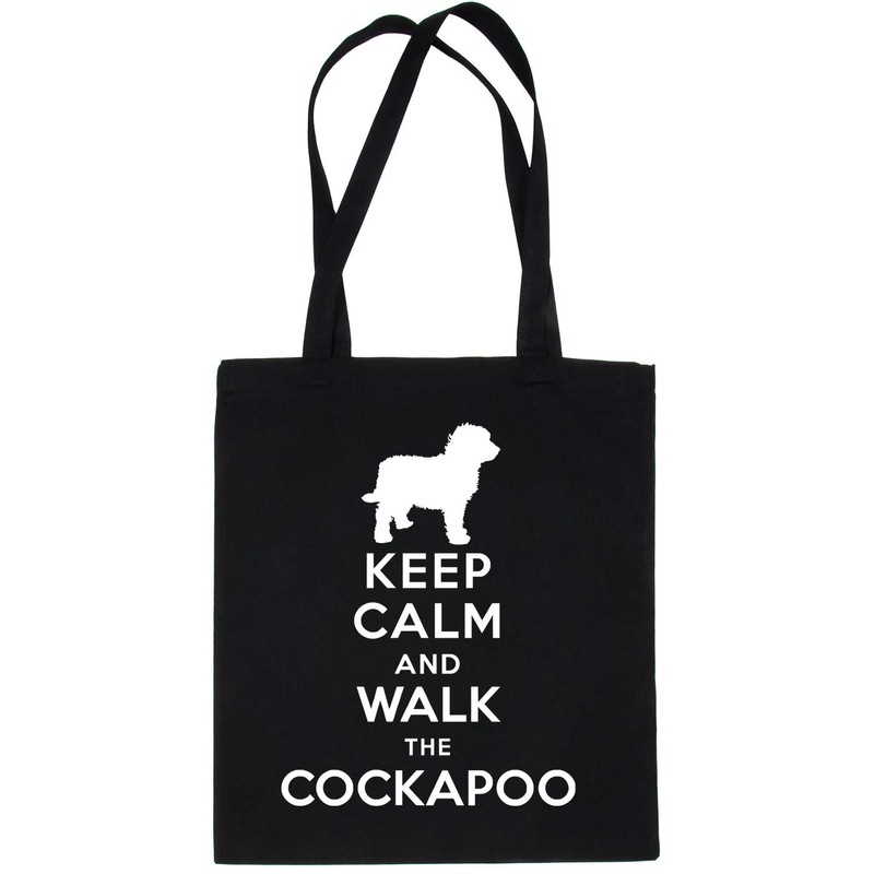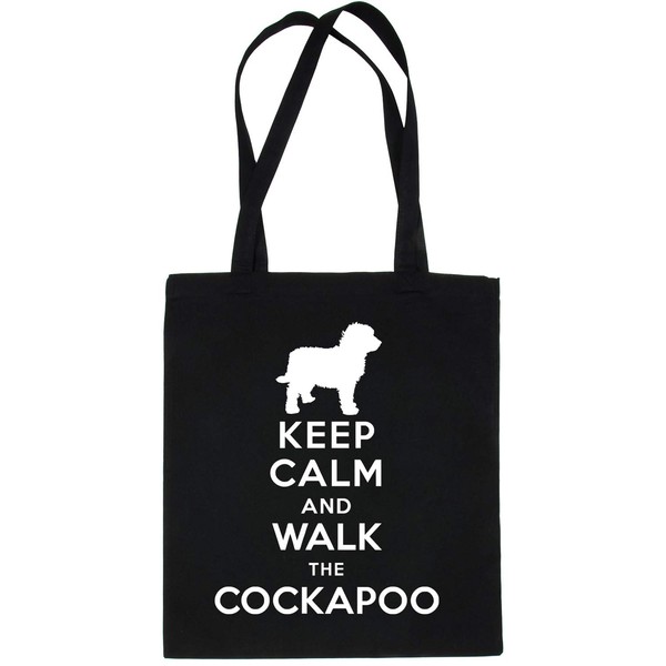 Print4U Shopping Tote Bag Keep Calm & Walk Cockapoo Dog Black