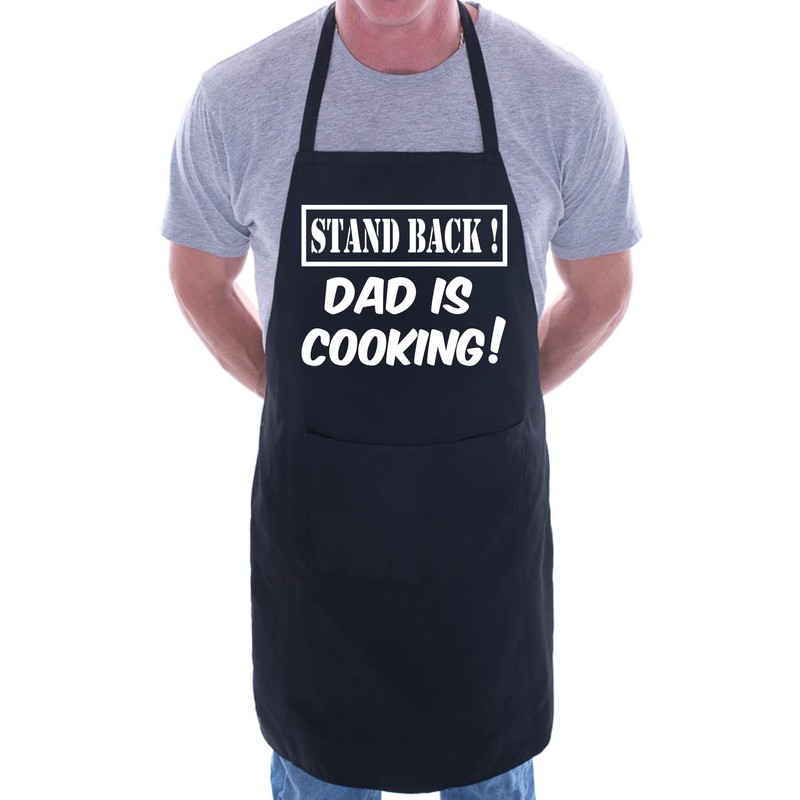 Print4U Stand Back Dad Is Cooking Fathers Day BBQ Cooking Novelty Apron Black