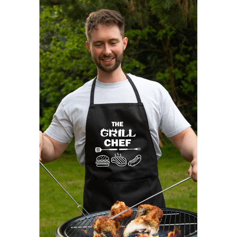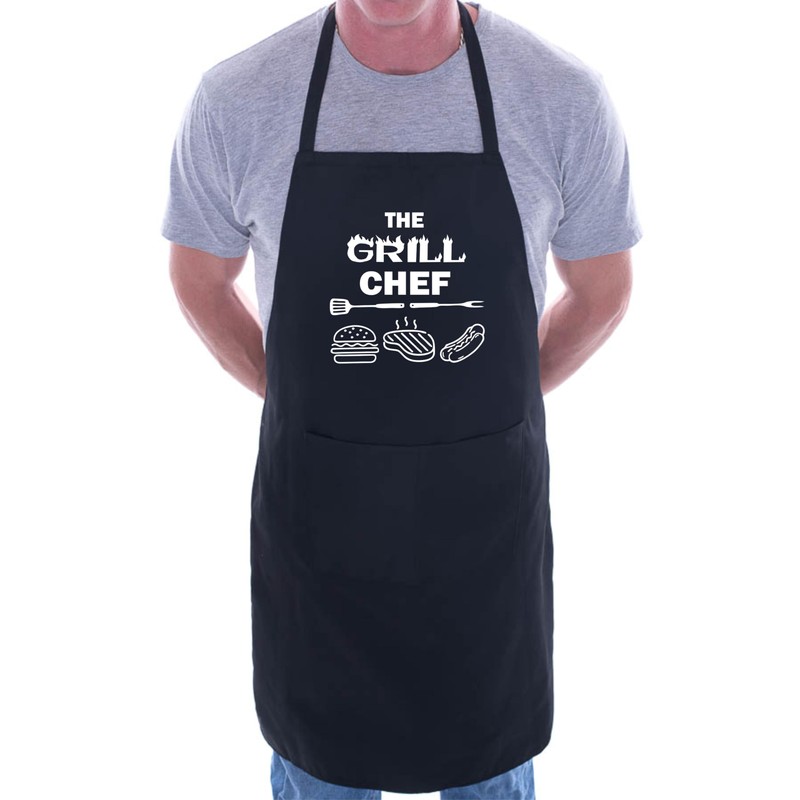 Print4U The Grill Chef Apron Funny Father's Day Birthday Gift Cooking BBQ Black