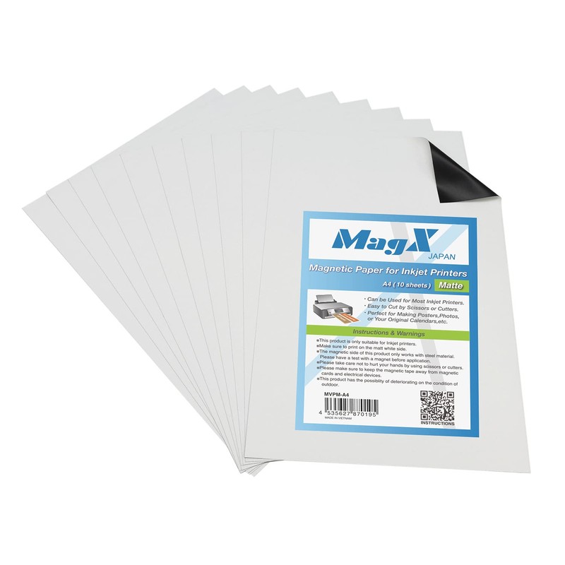 Printable Magnetic Sheets, Inkjet Printable Matte Paper, A4, White, Design & Printing, Magnetic Sheets, Magnetic Paper for Inkjet Printers, 10 Sheets