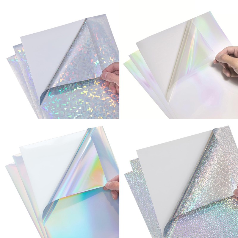 - Easy to Use: Our holographic laminate sheets for stickers is highly absorbent, and the ink penetrates easily into the vinyl inkjet sticker paper. These A4 holographic self-adhesive stickers can be easily peeled off without leaving any adhesive residue, and are sticky enough to adhere to various surfaces.