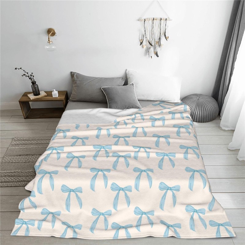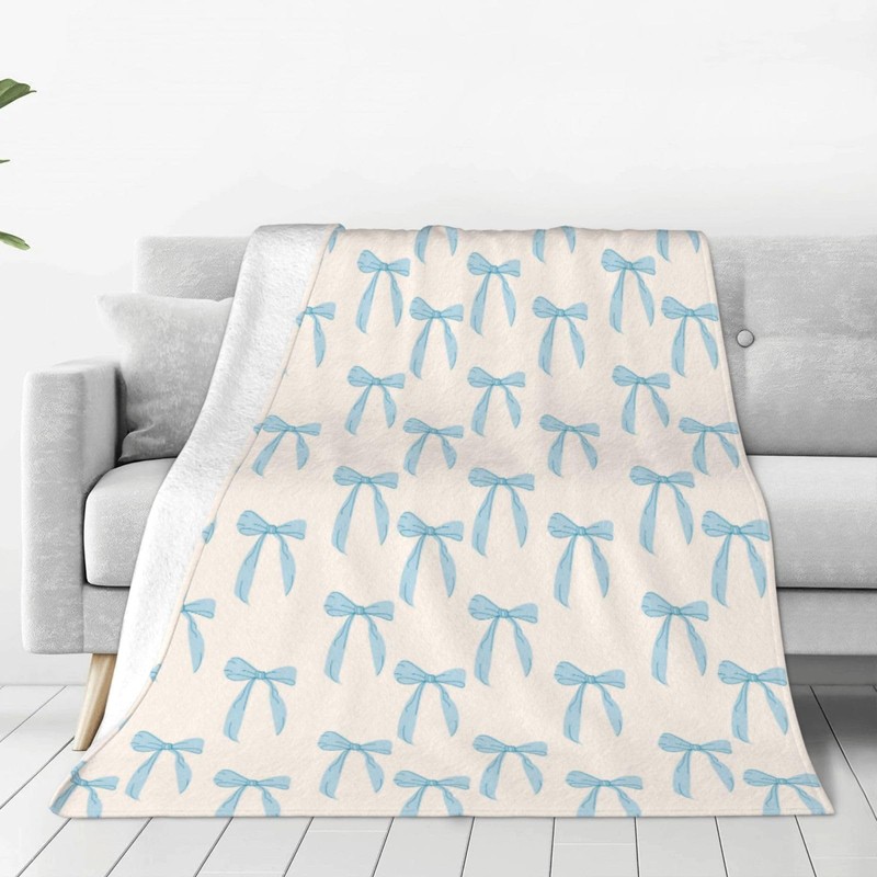 Printed Cute Blue Bows Throw Blanket Ultra Soft Cozy Flannel Fleece Blanket Fuzzy Warm Lightweight Bedding for Couch Sofa Chair Bed Living Room Bedroom Decor All Seasons Kids Adults,40"X30"