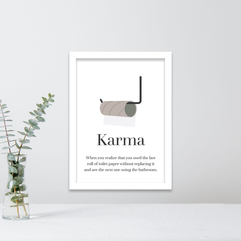 Printers Mews Karma A4 Print in White Frame Loo Wall Art Toilet Sign 24.5 X 33cm (9.6x13inch)