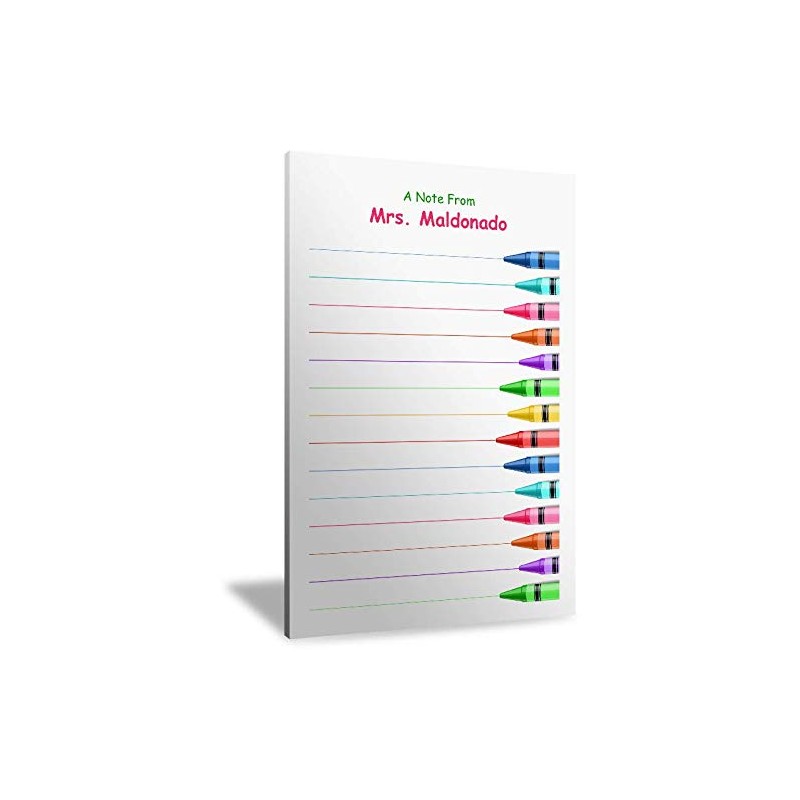 PrintPPS Customizable Teacher Gift Notepads With a Name (4 Pads Gift Wrapped, 25 Sheets Per Pad) (4" x 6", Crayons Design)