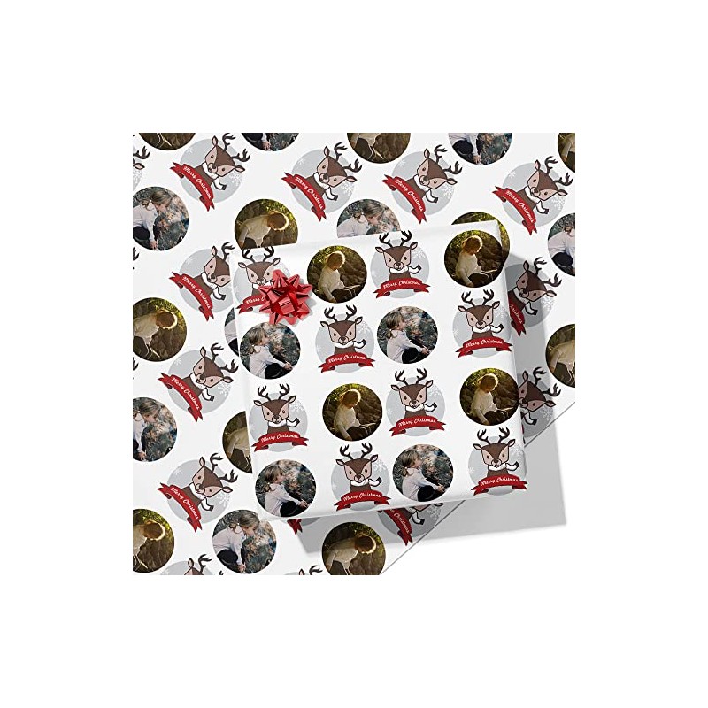 Printster Christmas Reindeer Personalised Wrapping Paper - Add Any Photo -A2 Sheet - 420mm x 594mm