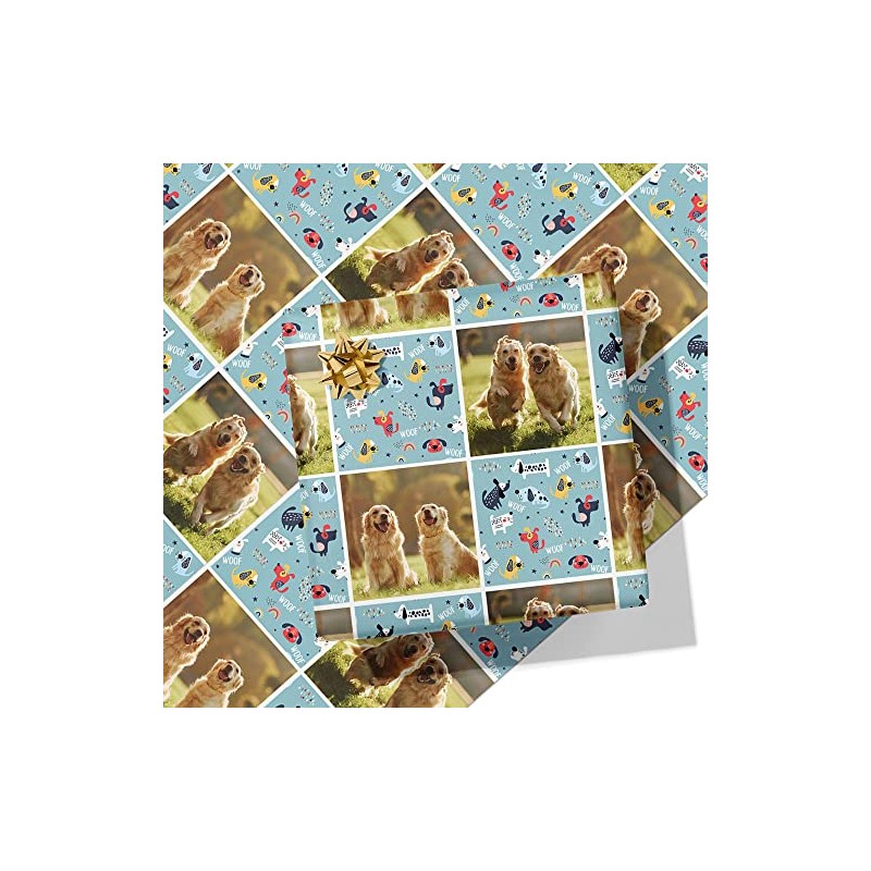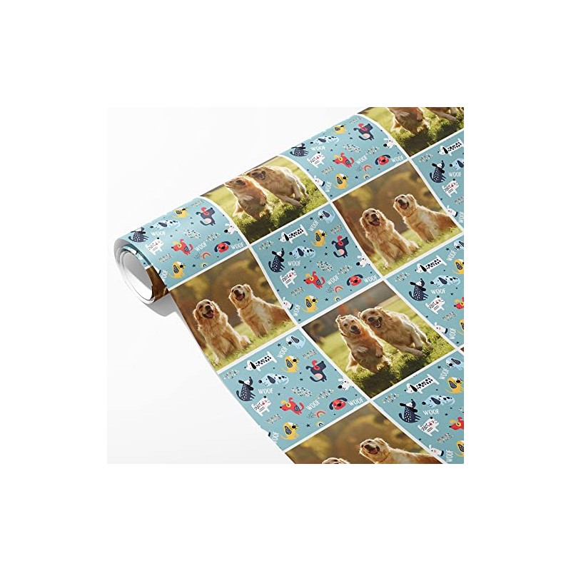 Printster Dog Grid Wrapping Paper - Add Any Photo-5m Roll - 594mm x 5000mm