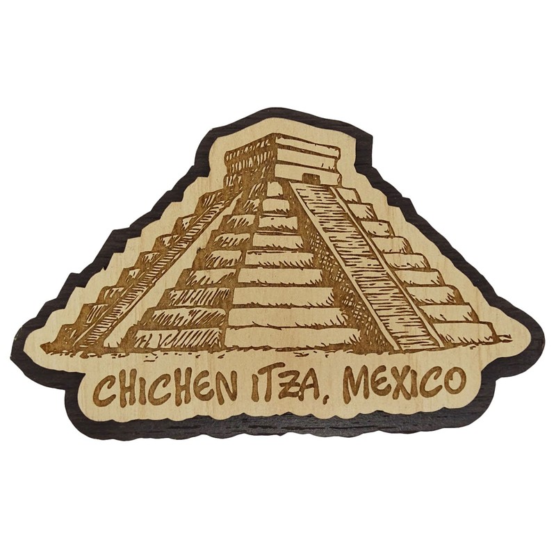 ✤ Premium Quality Mdf Wood Chichen Itza, Mexico Magnet Souvenir.