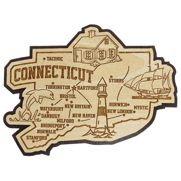 Printtoo Gift Collectibles Souvenir Wooden Connecticut Engraved Fridge Magnet