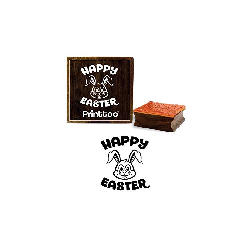 - ✅ A beautiful wooden rubber stamp with square Happy Easter Bunny Face Design by PRINTTOO