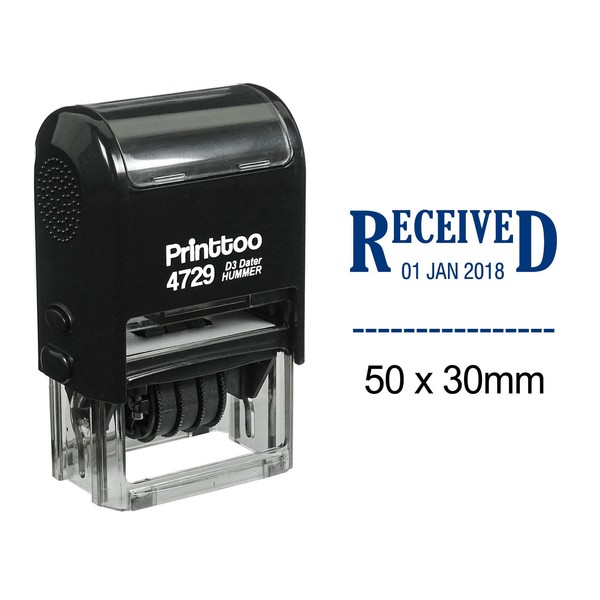 • ✅ Self Inking Dater Rubber Stamp With the text "Received" (Date format would be Day/Month/Year as shown in the image)