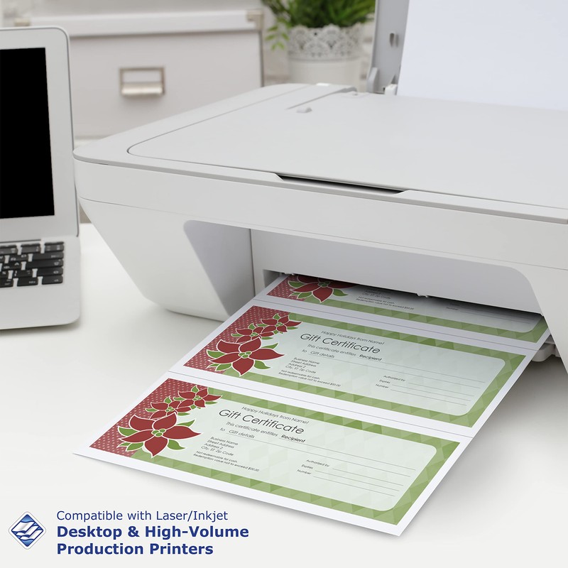 Our perforated papers have clean micro perfs that tear easily and the sheets lay flat allowing them to run jam-free on both laser and inkjet desktop and high-volume production printers and copiers.