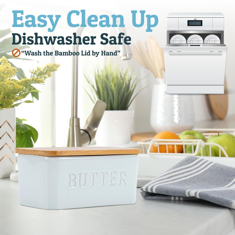 - Clean and Classy - The simple and pretty design of our ceramic butter dish with lid allows it to fit right into your kitchen and on your countertops. Made out of ceramic, the boat contains no harmful substances.