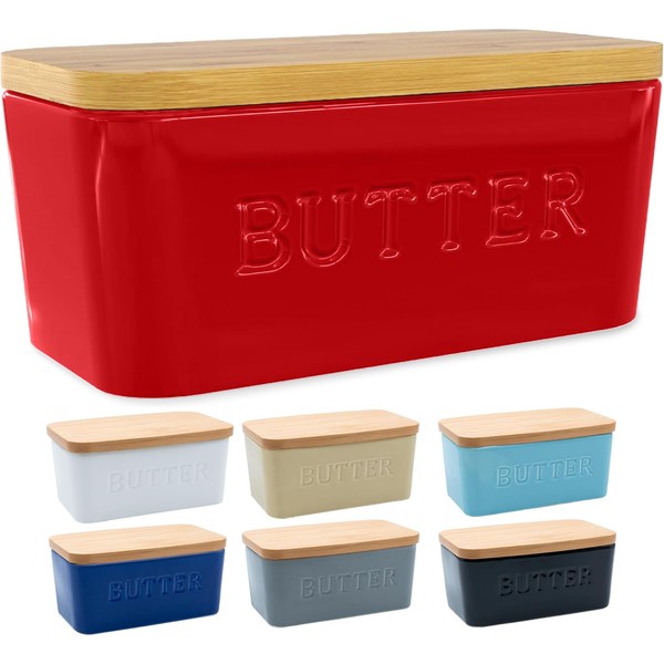 PriorityChef Large Butter Dish with Lid for Countertop, Ceramic Butter Container With Airtight Cover, Butter Keeper for Counter or Fridge, Butter Holder Storage, Red