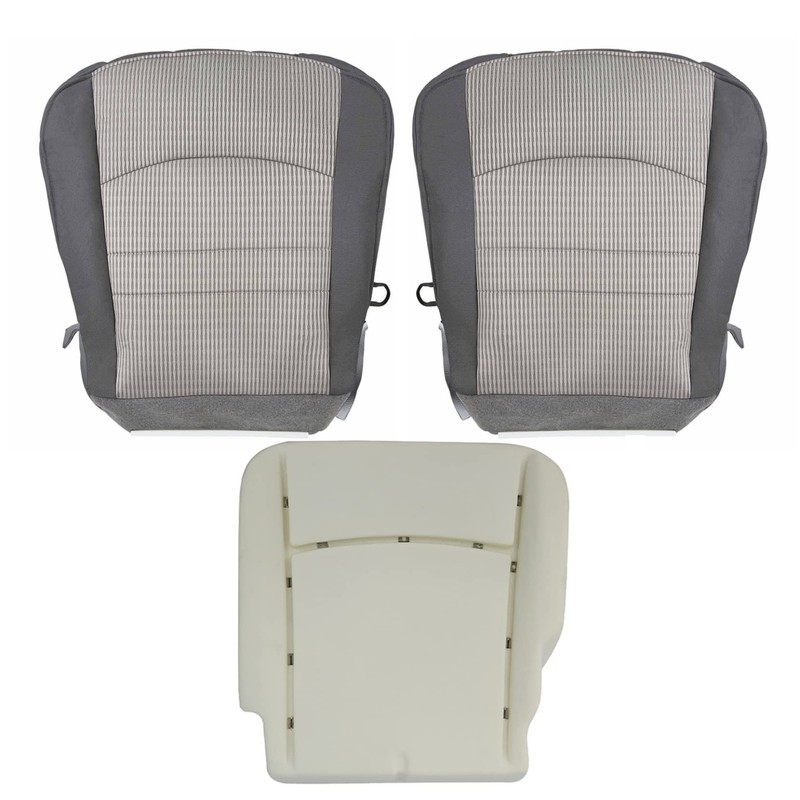 Priprilod Gray Driver & Passenger Side Bottom Replacement Seat Cover and Driver Side Foam Cushion Compatible with Dodge Ram 1500 2500 3500 4500 5500 2009 2010 2011 2012