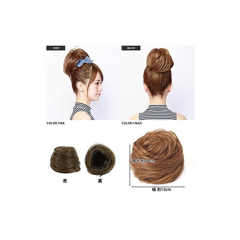 • Width: Approx. 5.1 inches (13 cm); Height: Approx. 3.9 inches (10 cm); Wig Type: Buns
