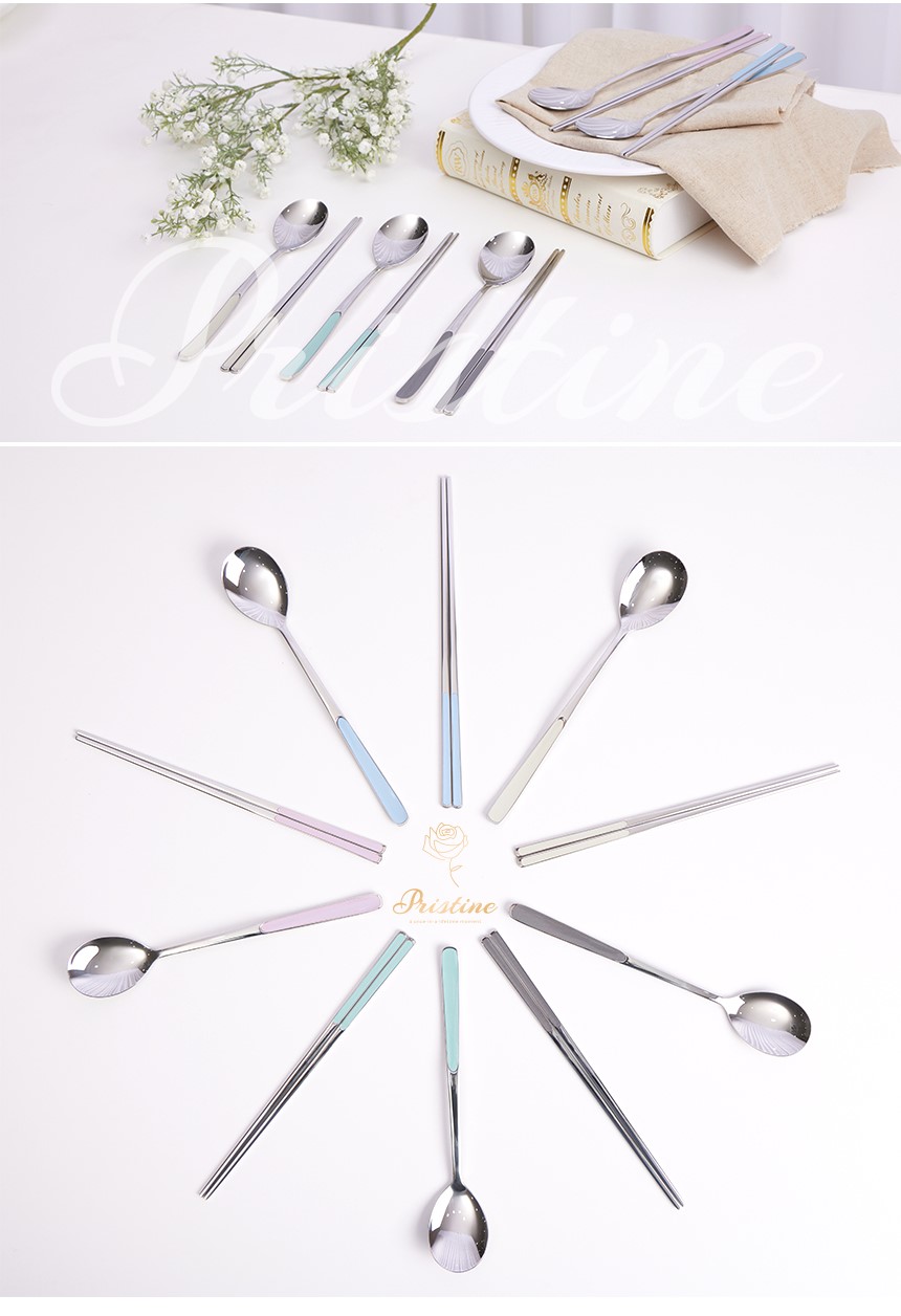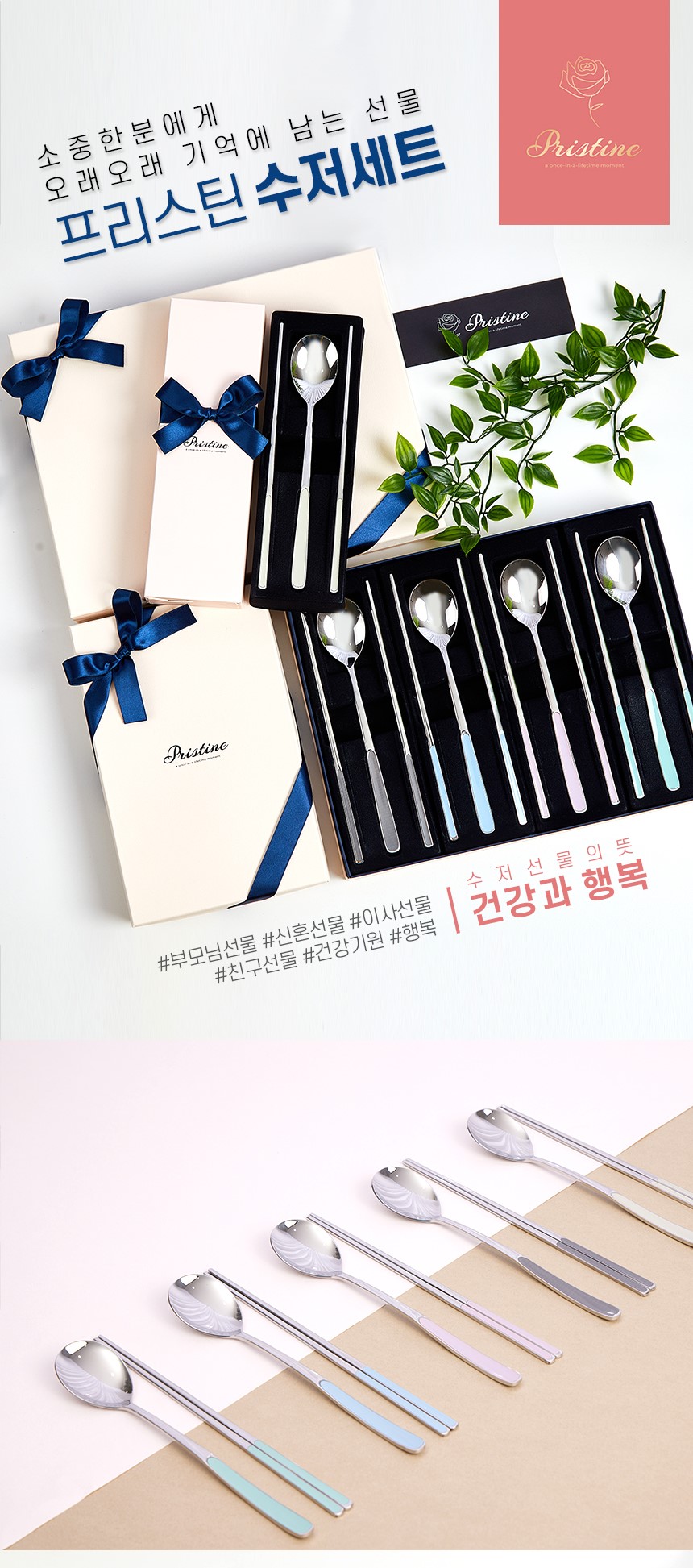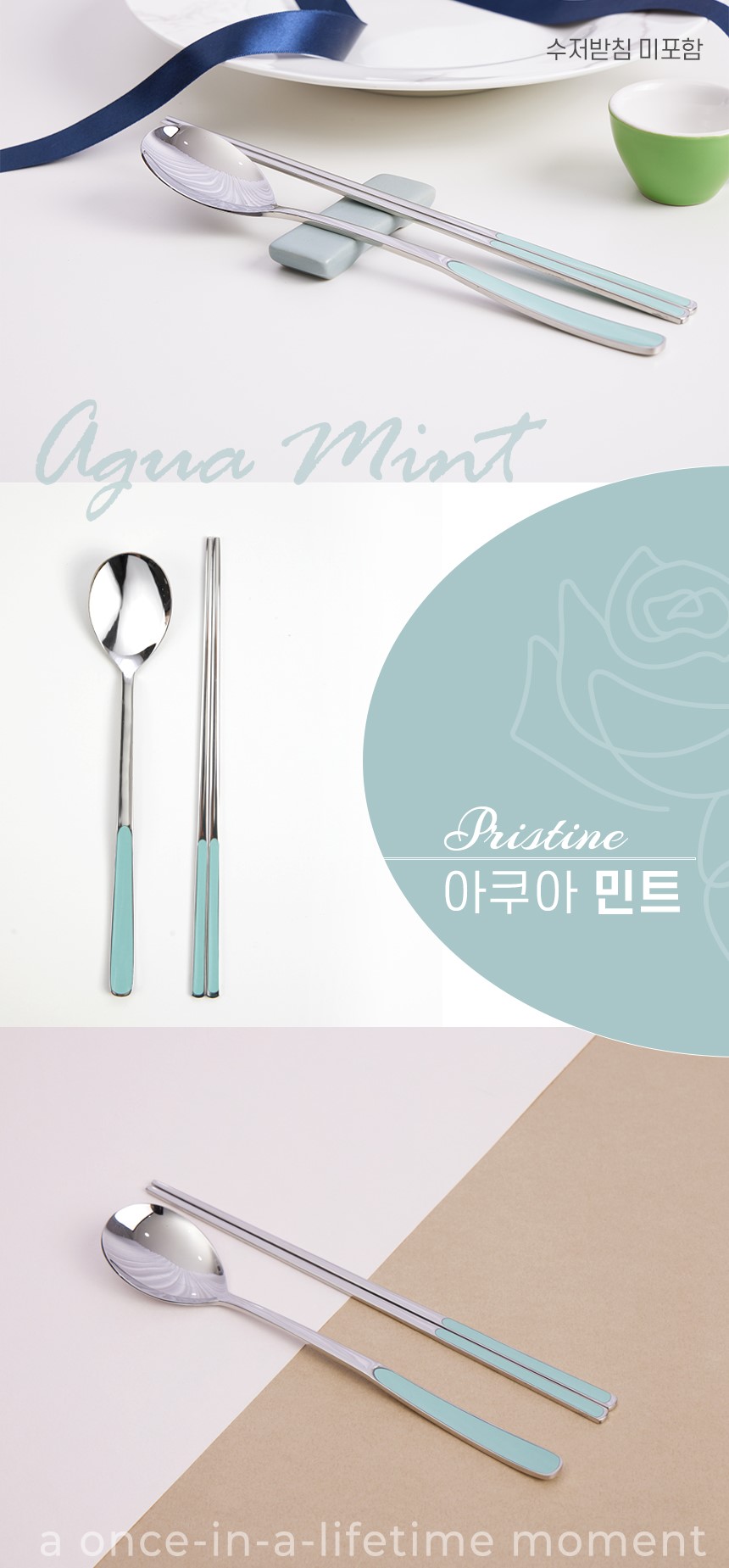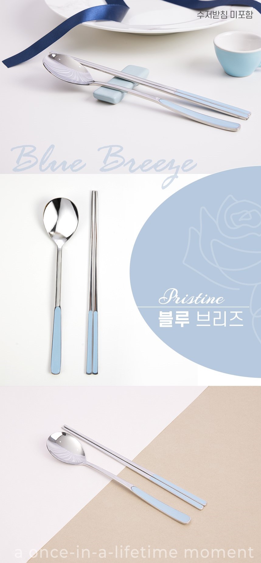 Pristine pastel color, premium, high-quality domestic cutlery set with good grip, 4-person package, Blue Breeze / 프리스틴 파스텔컬러 그립감 좋은 프리미엄 고급 국산 수저세트 4인 패키지, 블루브리즈