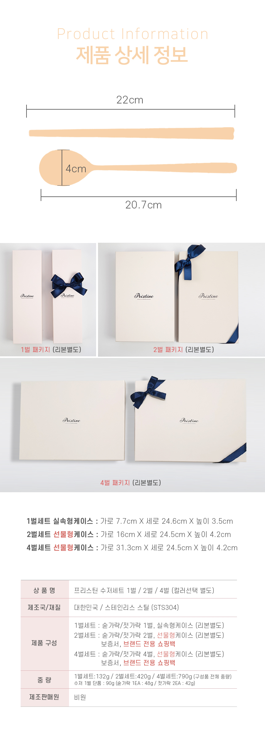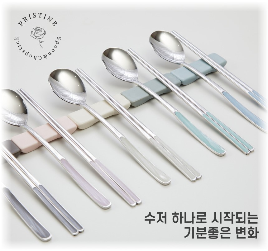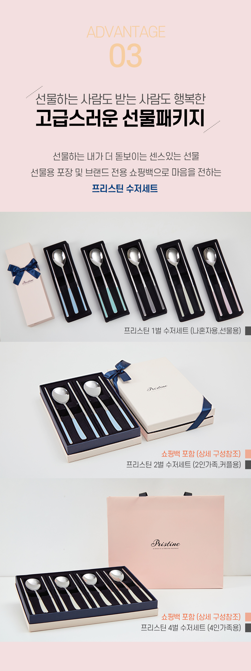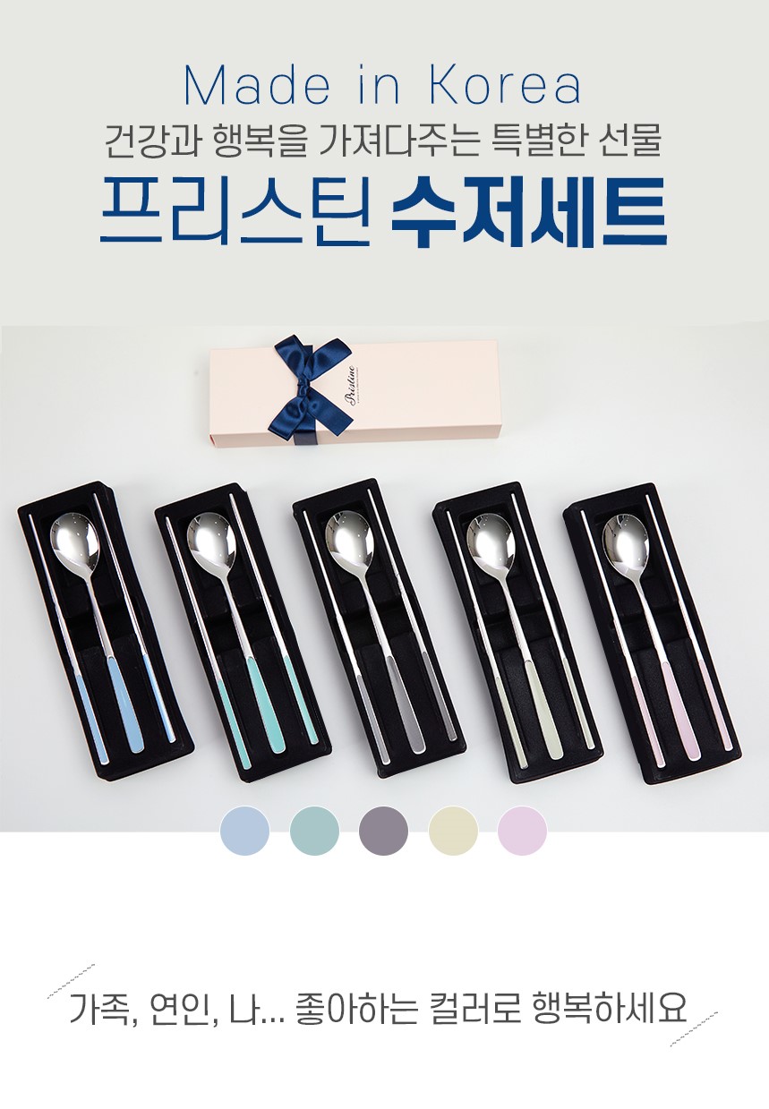 Pristine pastel color, premium, high-quality domestic cutlery set with good grip, 4-person package, Blue Breeze / 프리스틴 파스텔컬러 그립감 좋은 프리미엄 고급 국산 수저세트 4인 패키지, 블루브리즈