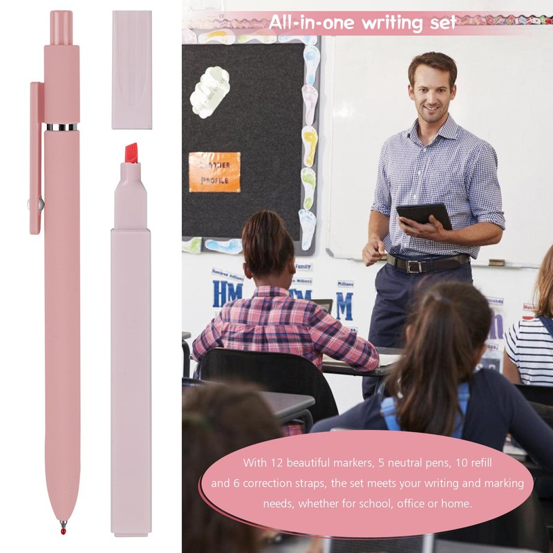 - The package includes: the Aesthetic highlighter set includes two erasers, six mechanical pencils, six highlighters, five gel pens, two correction tapes and two boxes of pencil leads. This extensive pastel highlighter set is ideal for use at school, home or office. The Aesthetic pens ensure creative work and precise writing.