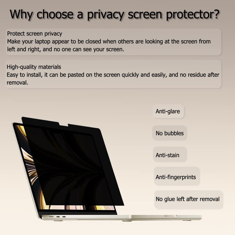 Privacy Screen Protector for 2024 2023 2022 MacBook Air 13.6" A3113 A2681 with M3 M2 Chip & Touch ID 5H PET High Definition Anti Scratch Dustproof Protective Cover Skin Accessories