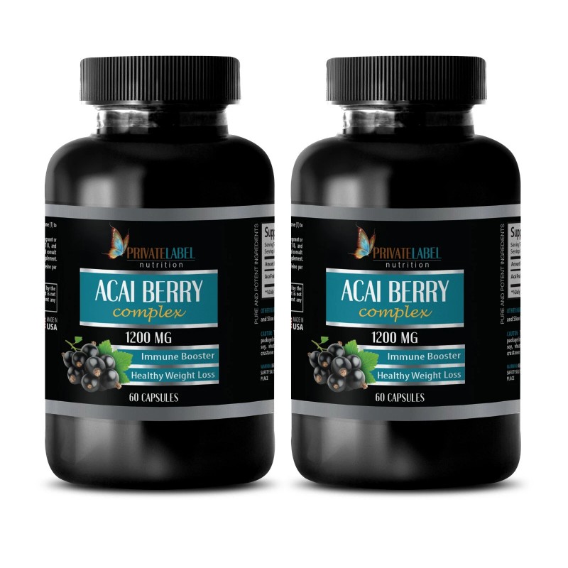 PRIVATE LABEL Rich in nutrients - ACAI BERRY - Promotes brain function 2 Bottles 120 Capsules