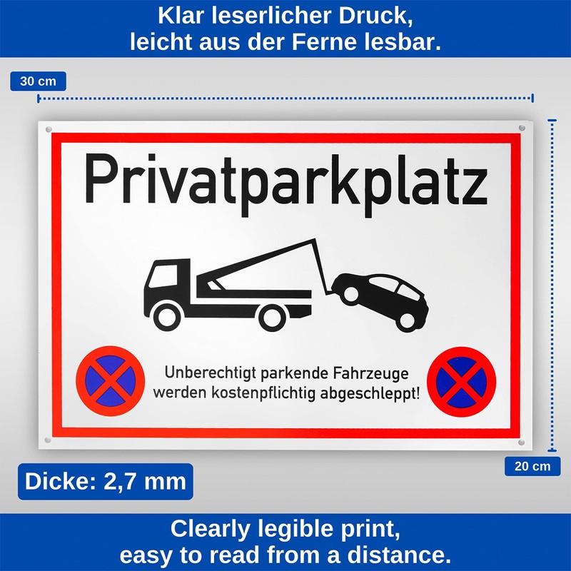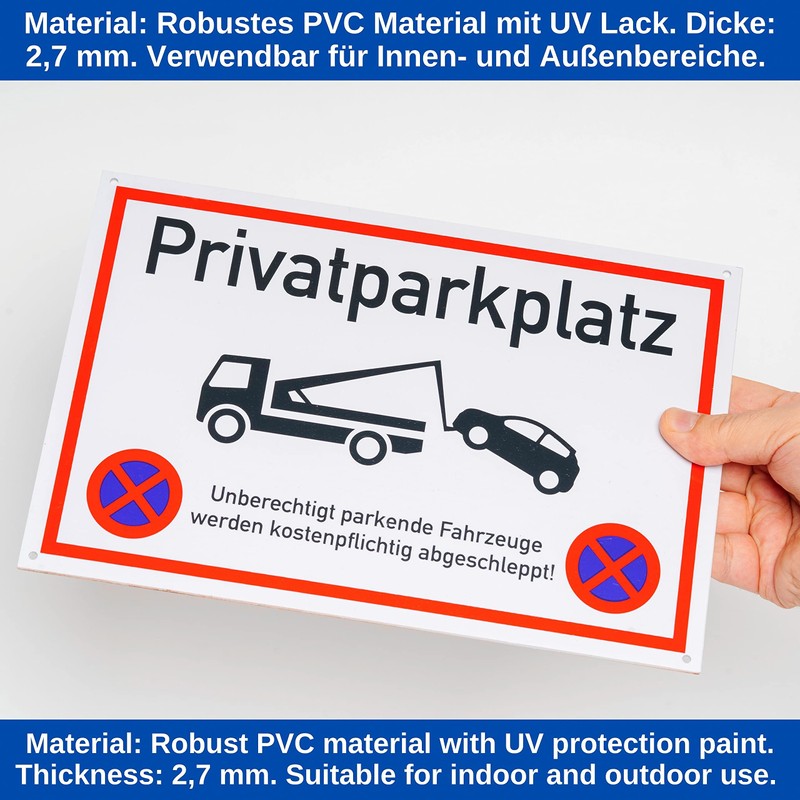 - ✅ [No parking sign made of PVC material – material thickness 2.7 mm] The warning sign is made of weatherproof and UV-resistant PVC plastic and has been professionally printed in UV direct printing process.