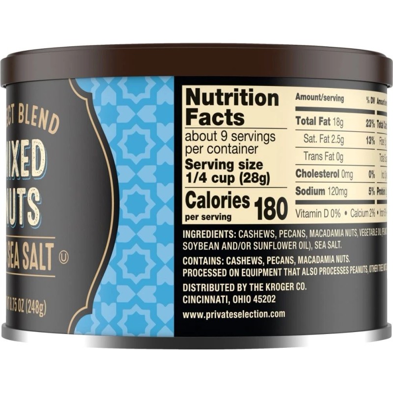 Private Selection Sea Salted Mixed Nuts are a delectable snacking treat perfect for any pantry. This mix contains premium cashews, pecans, and macadamia nuts that are a nut-lover"s dream. Gently tossed in sea salt, these nuts are great on their own, or with a cheese and nut plate. Enjoy gourmet mixed nuts by the handful with this wonderful snack.