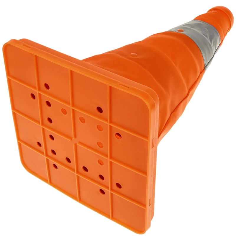 • Features: Traffic cone with reflector for signalling is a device used to warn drivers of obstacles or changes on the road. The reflector is an important part of the cone as it allows vehicles to detect it in low light conditions or in the dark. Thanks to its design, this light sign can be folded up so that it can be stored anywhere to save space.