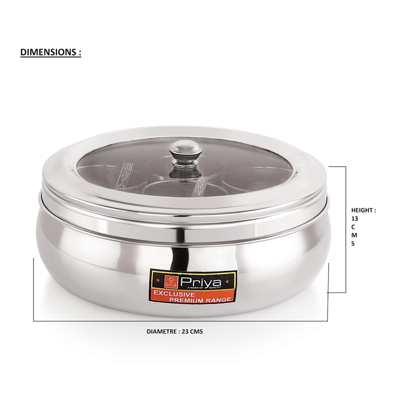 Priya Stainless Steel Spice Box (See Through: Size 2450 Ml)