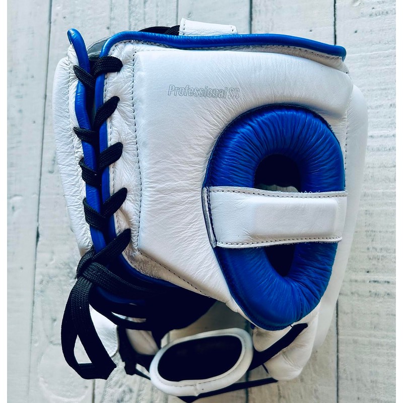PRIZE RING/プライズリング "Professional SS" 本革製ヘッドギア 白/青 (L)