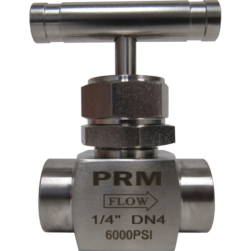 PRM 1/4 Inch Needle Valve, 304 Stainless Steel, Female NPT, 6000 PSI, PTFE Stem Seal, T-Design Handle, Temperature Range -65°F to 450°F for Fluid Control in Industrial Applications