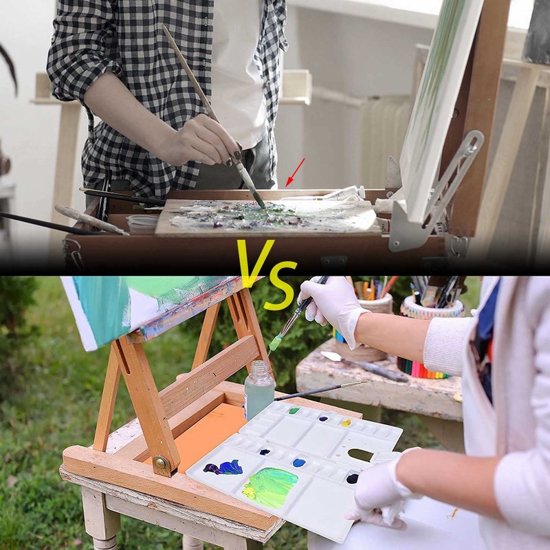 3.The oil paint palette could be rotated 180 degrees into half size; the acrylic palette is easy to fold and lock for travel or storage.