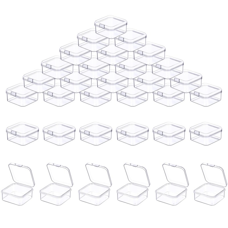 Prmape Pack of 50 Storage Boxes with Lids Small, 3.5 x 3.5 x 1.8 cm Rectangular Empty Mini Storage Box, Small Clear Plastic Beads Storage Container Box for Craft Accessories