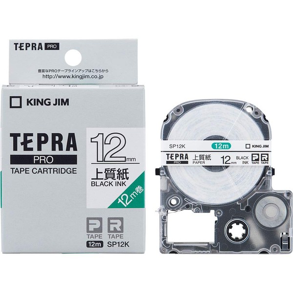 キングジム 【純正】 テプラPROテープカートリッジ 上質紙ラベル 12mm 白ラベル/黒文字 長さ12m SP12K