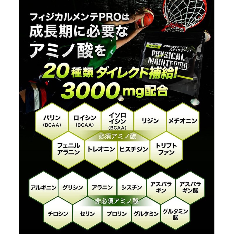 - ✅【成長期の中高生アスリートに!】フィジカルメンテプロは成長期に必要な20種類のアミノ酸を配合した中高生のための成長期の栄養サポートドリンクです。