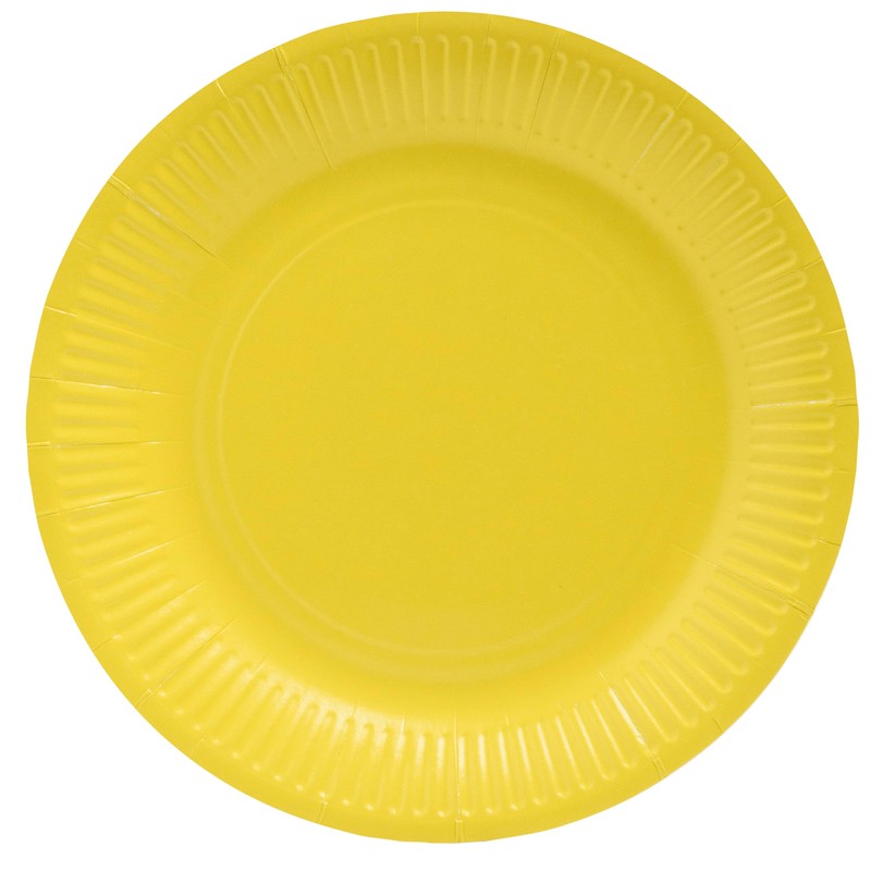 - The foil pack contains 20 round paper plates with a diameter of 23 cm.