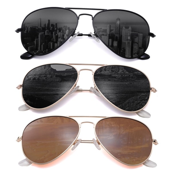 Pro Acme Classic Polarized Aviator Sunglasses for Women Men 3025 3Pack(Black/Golden Black/Brown)