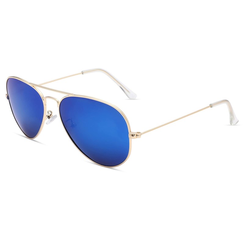 Pro Acme Classic Polarized Pilot Sunglasses for Men and Women UV400 Protection (Gold Frame | Blue Mirrored Lens)