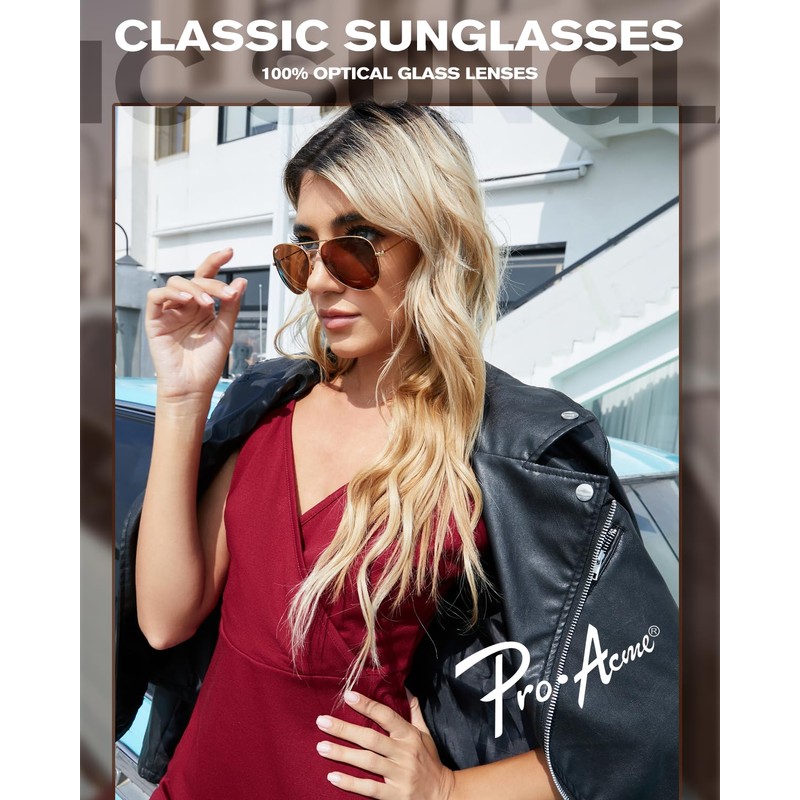 Pro Acme Pilot Sunglasses Women Men 100% Real Glass UV400 Lens Classic Sunglasses UV400 Protection(Gold Gray)