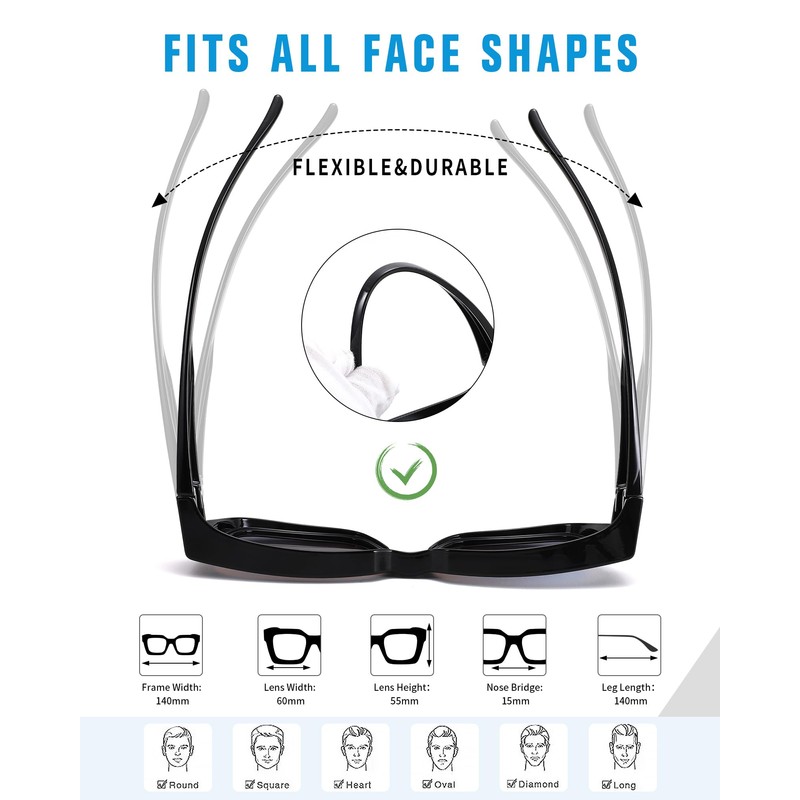 - Square over glasses design: the trendiest square frame of the moment, suitable for men and women, making it possible to fit and firmly with different shapes of glasses. Lens dimensions: width (60 mm), height (55 mm), make sure the size of your is smaller than the Pro Acme glasses frame.