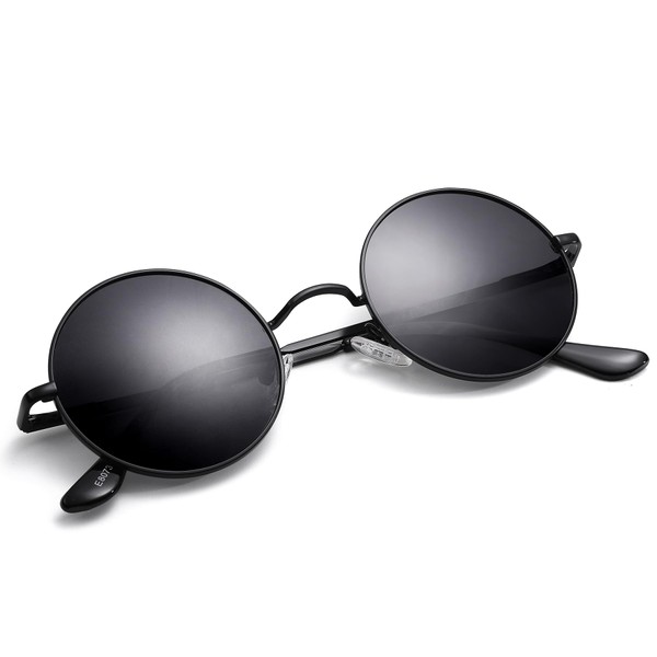 Pro Acme Retro Small Round Polarised Sunglasses for Men Women, Black Frame | Grey Lens