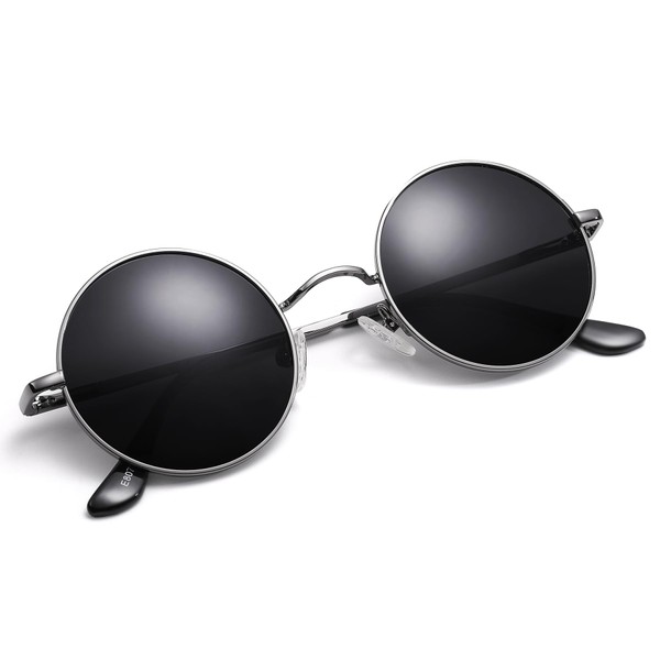 Pro Acme Retro Small Round Polarised Sunglasses for Men Women, Silver Frame | Grey Lens