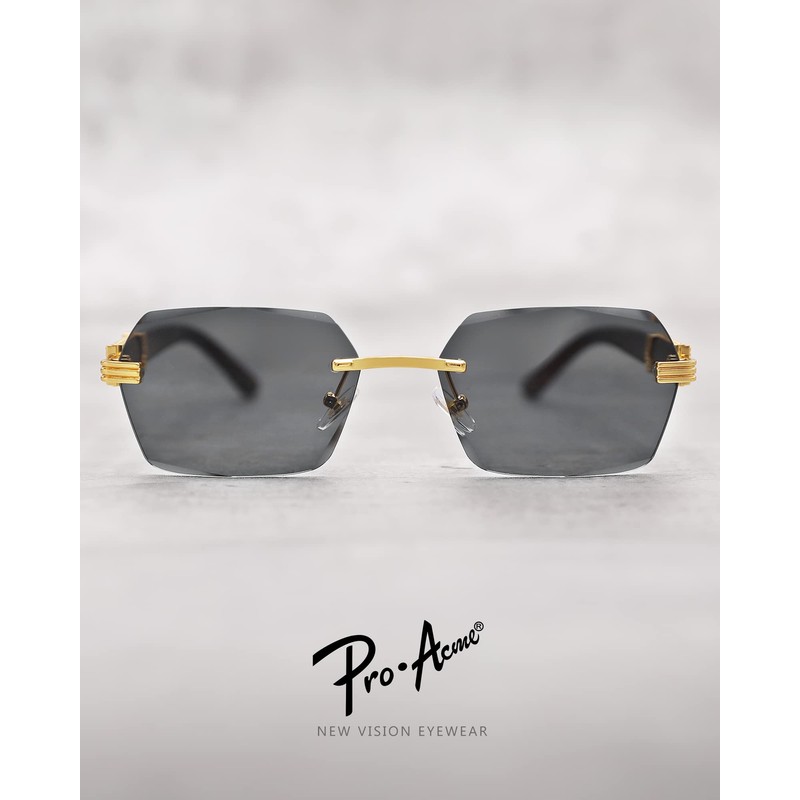 Pro Acme Rimless Rectangle Sunglasses for Men Women Square Shade Eyewear Frameless y2k Glasses(Gold/Clear+Grey)