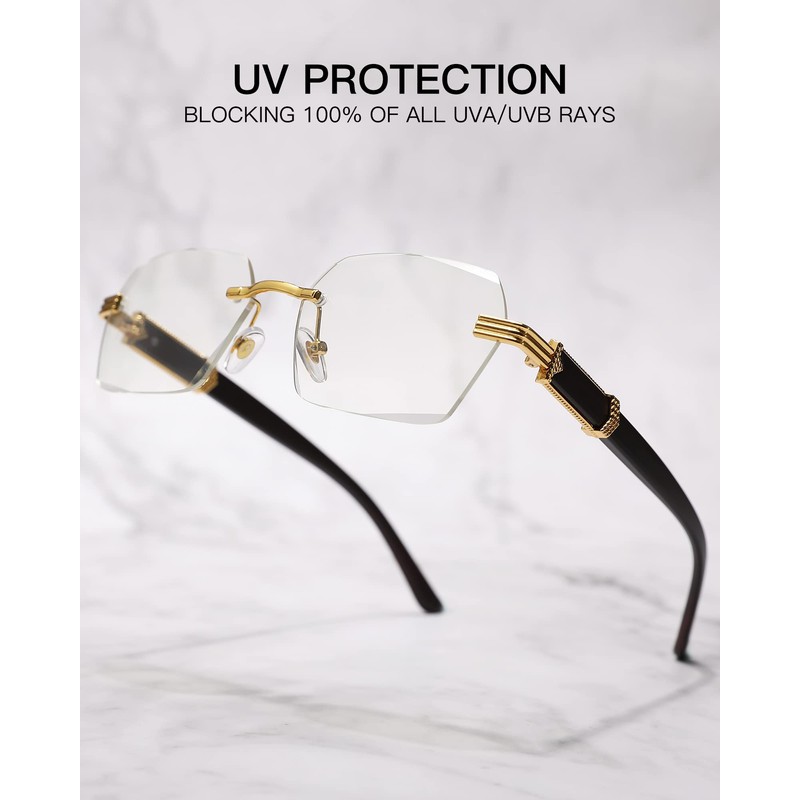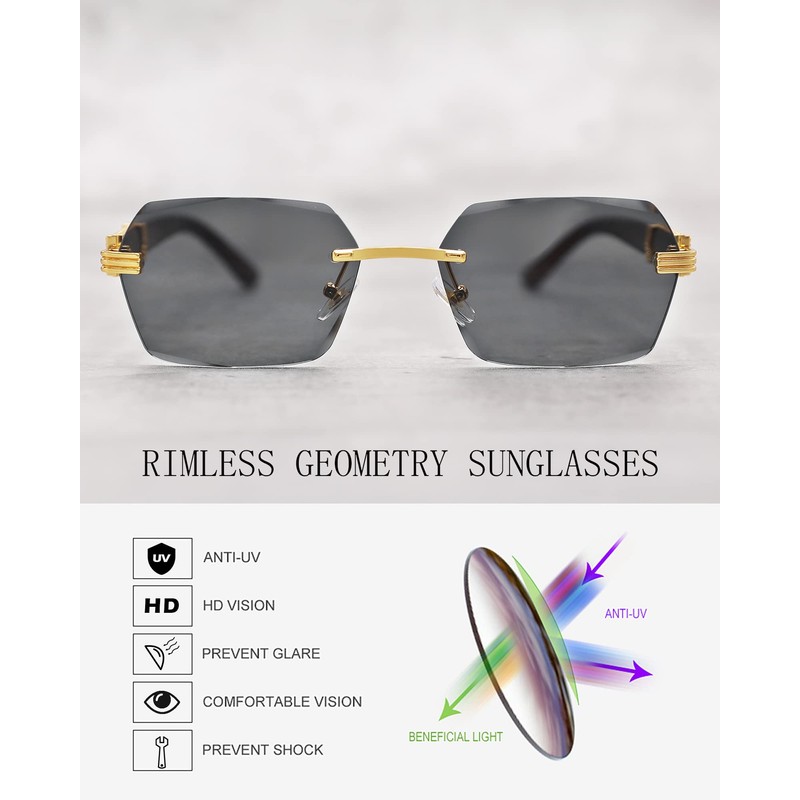 • 【RIMLESS SUNGLASSES】: The rimless frame and delicate metal temples makes these sunglasses look of very chic. stylish diamond cutting design, it's super stylish, and match for any look, makes you the most glamourous of the crowd.