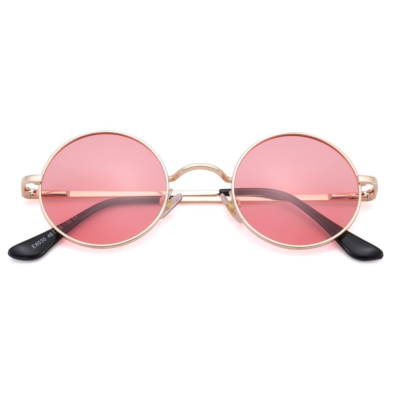 Pro Acme Small Round Polarized Sunglasses for Men Women Circle Retro Shades Metal Hippie Sunglasses UV400 (Gold Frame/Transparent Pink Lens)