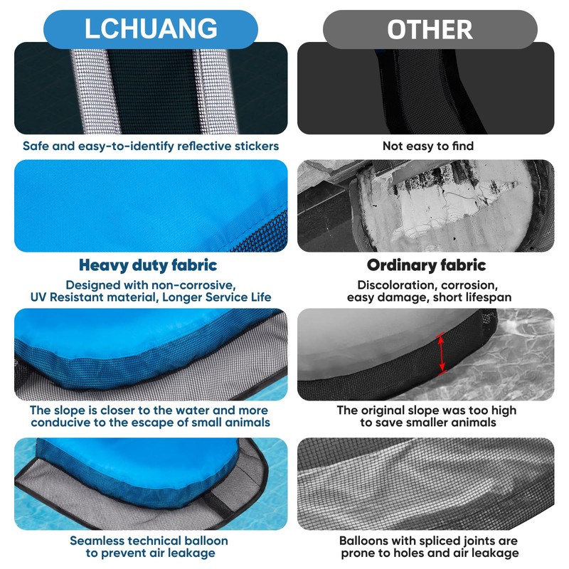 - ❤️Saves time and effort: Instead of spending time and effort trying to rescue trapped animals from your pool, LCHUANG pool animal escape ramp allows them to escape on their own. This makes for a more efficient and stress-free pool maintenance experience.