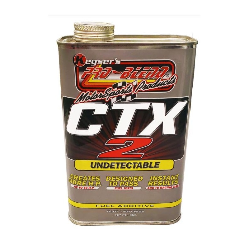 This fuel additive comes in a 32 ounce can and is undetectable. CTX-2 will add up to 40 confidential horse power. This additive is made to pass and you will see instant results. Produces strong mid-range torque. Mix 1 quart CTX in 2-1/4 gallons race gas or 1/2 gallon CTX into 4-1/2 gallons race gas. This will also work with crate motors using E85 fuel.