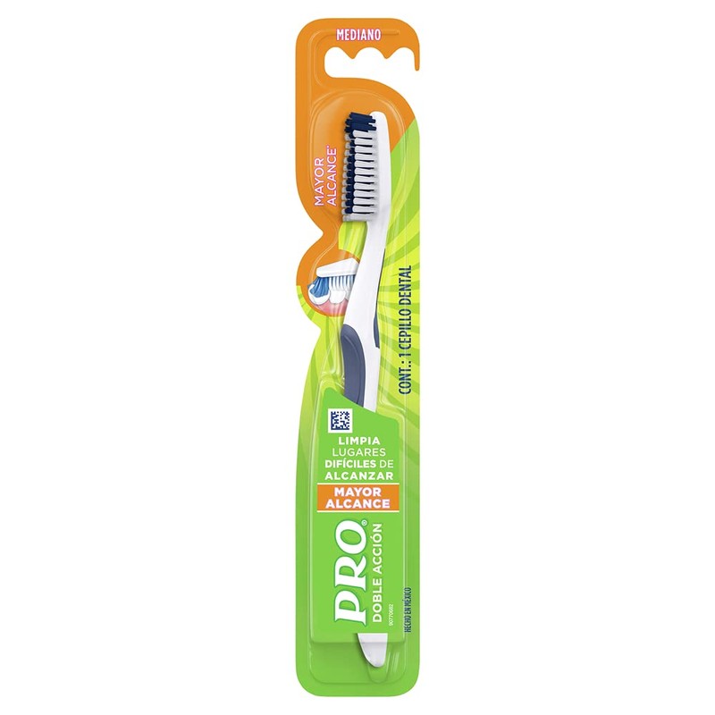 PRO Cepillo Dental Doble Acción Mayor Alcance, 60 Mediano, Colores Surtidos