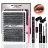 PRO DIY Lash Extension Kit 300 Pcs Lash Clusters D Curl, Mix Eyelash Clusters Individual Lashes Kit Lash Bond And Seal Lash Remover Eyelash Brush Lash Tweezer Self Apply At Home(30D+40D-9-16mix Kit)