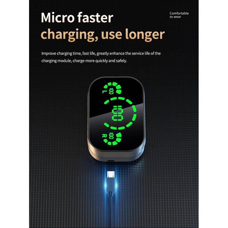 - ⚡【COOL LED SCREEN】 : Simple, Easy to Read Bluetooth LED display will clearly show the accurate power level of the charging box and the earphone, this way you can better arrange the future management of the headset, and will not worry about the earplugs without power/electricity.