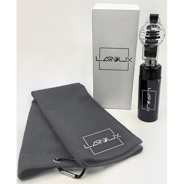 Pro Golf Club Brush Cleaner with Retainer Clip and Button Press Water Bottle 7.5 Inches Holds 4 Ounces of Water, Clip on Waffle Golf Towel,Essentials Golf Accessories for Men, Best Golf Gifts for Men
